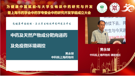 上海市药学会中药学专委会主任委员徐宏喜教授以“喜说中医药国际化”为题,介绍了全球中医药研究的进展,勉励学生放眼世界,心怀责任。中科院上海药物所黄永焯研究员以“中药及天然产物成分靶向递药及免疫微环境调控”为题,围绕“递药技术是改善复杂疾病治疗的重要手段”这一科学理念,介绍了多种递药系统的设计策略与机制。上海药品审评核查中心高敏洁部长从药事管理的角度,解读了药品研发的法规要求、核查要点,引导同学们树立规则意识,严守科研底线。中药研究和开发学组组长沈岚教授为学生系统讲述了“从’药辅合一’视角看中药制剂之智慧”。四场讲座引发学生热烈反响,并纷纷在会后提问,与讲者进行深入交流。