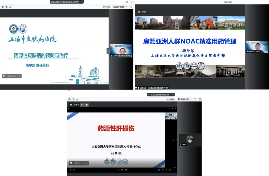 皮肤病医院陈中建副院长为大家带来了药源性皮肤病的治疗和预防,仁济医院顾智淳副主任药师系统讲述了房颤亚洲人群NOAC精准用药管理,九院黄浦分院刘晓琰主任介绍了药源性肝病,分享了药物肝毒性的作用机理和防治注意事项。