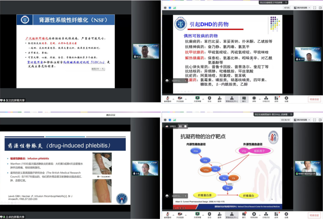 瑞金医院张文教授、章卫平教授分别对药源性肾病、药源性血液病做了相关分享。接着长海医院王卓主任介绍了药源性静脉炎的相关内容,中山医院管丽华教授从药理学角度进行分析,介绍了不同情况下新型口服抗凝药的选择。