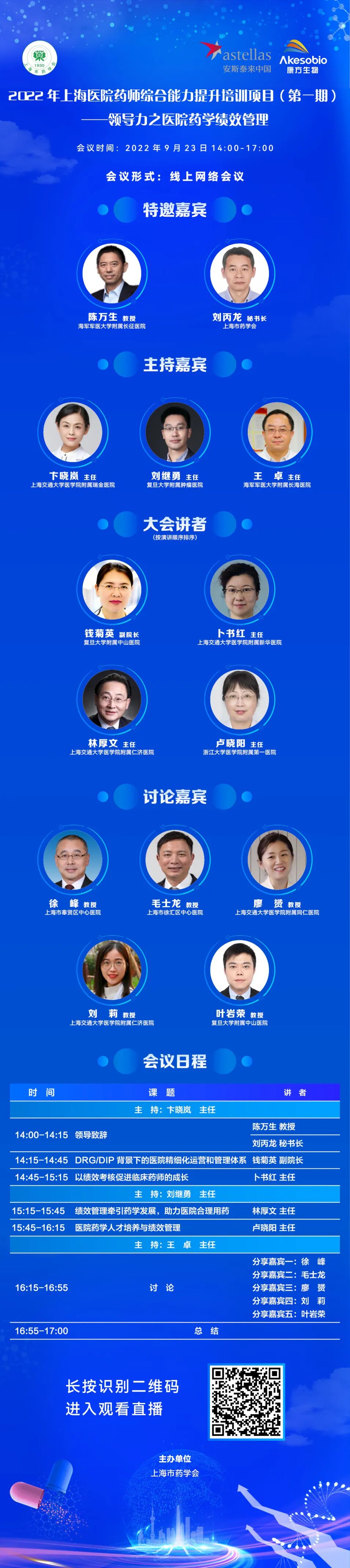 2022 年上海医院药师综合能力提升培训项目(第一期)——“领导力之医院药学绩效管理”,将于9月23日(周五)14:00-17:00在线上举行,欢迎各位药师积极参加!