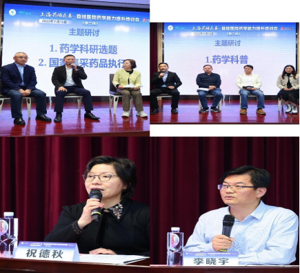 主题研讨环节由两个部分组成,主题研讨1围绕“药学科研选题、国家集采药品执行”为主题展开研讨。由上海同济医院祝德秋教授主持,上海市徐汇区中心医院毛士龙教授、上海市浦东新区公利医院李文艳教授、第六人民医院南院徐峰教授共同参与讨论。主题研讨2主要围绕“药学科普”为主题展开研讨,由复旦大学附属中山医院李晓宇教授主持,复旦大学附属中山医院青浦分院唐扣明教授、上海市光华中西医结合医院谢东浩教授、上海市社区卫生协会药事和药物专委会顾洪安教授、上海市虹口区欧阳路街道社区卫生服务中心沈美教授共同参与讨论。8位专家契合主题,结合自身的理解和体会,进行了深入的讲解,赢得了与会药师的阵阵掌声。其中祝德秋教授就主题研讨1的几位教授的研讨意见做了总结性发言:科研工作永远在路上;药品集中采购要紧跟政策出发并配合临床做好相应解释等工作。李晓宇教授就主题研讨2的几位教授的研讨意见做了总结性发言:药学科普要从加大人才培养、提高药学科普质量、加大科普对象的认知度。