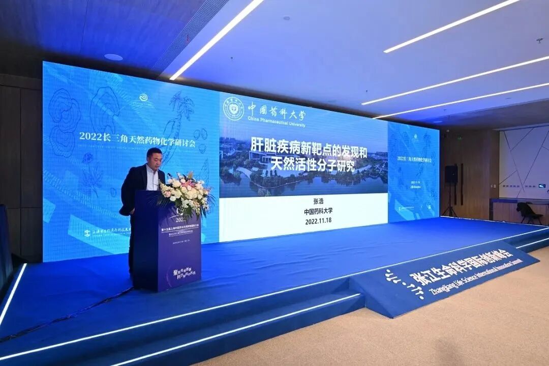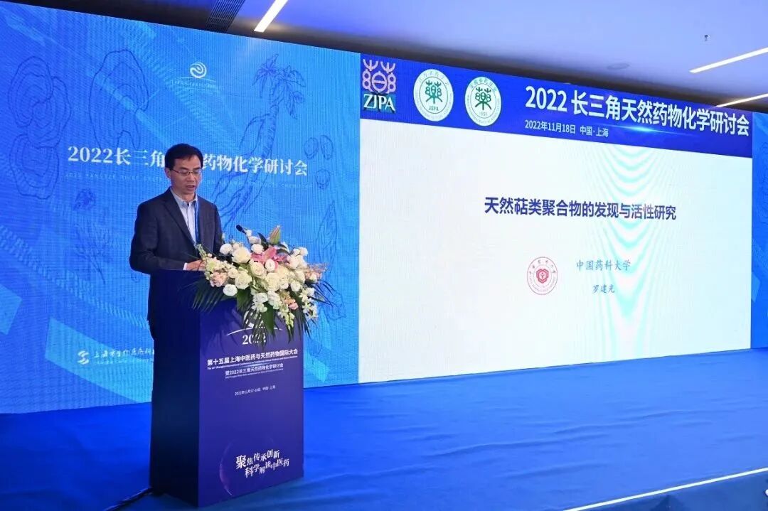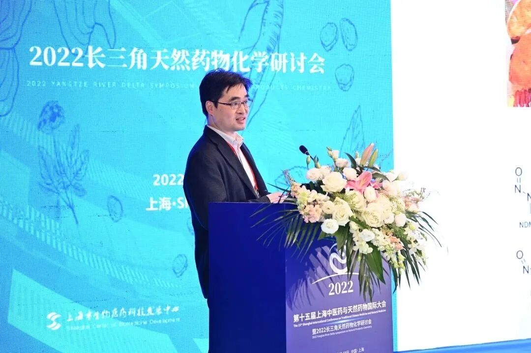 中国科学院上海有机化学研究所的洪然教授对双面亚硝基在生物碱合成中的应用进行了详细的介绍;中国药科大学张浩教授以RNA结构蛋白研究为切入点,对天然活性分子治疗肝脏疾病的机制进行了阐释;杭州师范大学的周建良教授从多途径、多靶点、多通路的角度对中药抗肿瘤活性成分发现与作用机制进行介绍;安徽省食品药品检验研究院张亚中教授以《聚焦中药质量标准内涵研究,促进中药产业高质量发展》为题展开论述,从产学研一体化的角度,对提升中药材质量管理、推动中药材高质量发展进行了探索。安徽中医药大学的欧金梅教授、中国科学院上海药物研究所的廖苍松研究员、上海中医药大学的李医明教授、南京中医药大学的吕祁副教授、浙江工业大学的王鸿教授分别作了题为《药用梅的遗传多样性研究》、《酶甲基化与氟甲基化研究》、《天然肥大细胞稳定剂研究》、《基于巨噬细胞功能调控的抗溃疡性结肠炎药物发现》、《海洋天然产物发现与资源利用》的报告,从宏观到微观多角度介绍了天然药物的研究与开发。中国药科大学罗建光教授、上海交通大学金慧子教授分别担任下半场学术报告环节主持人。