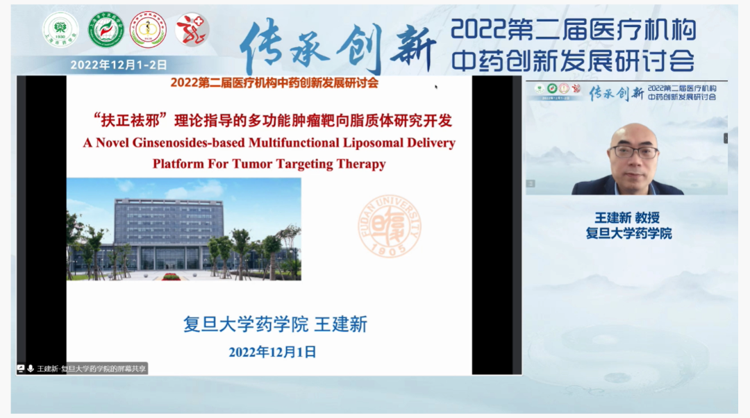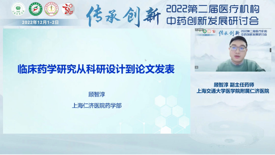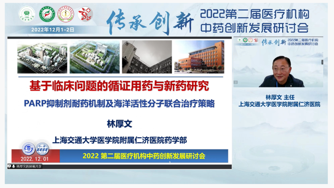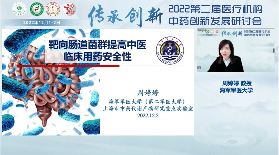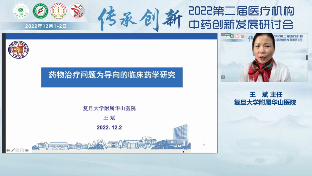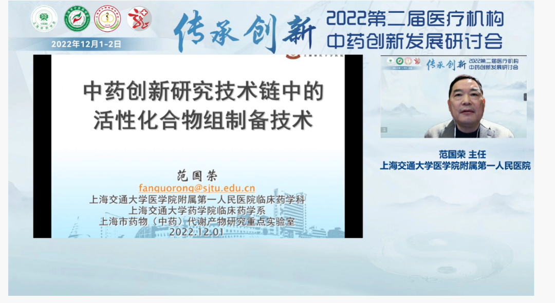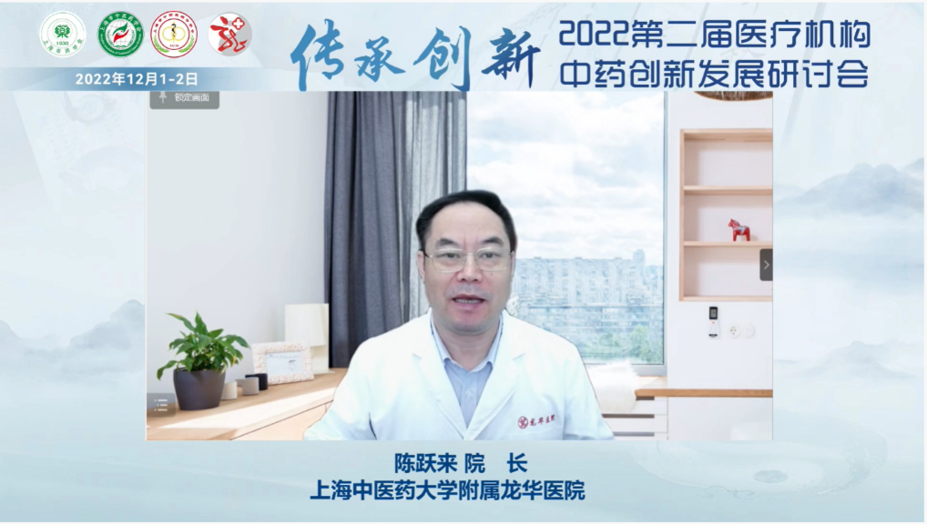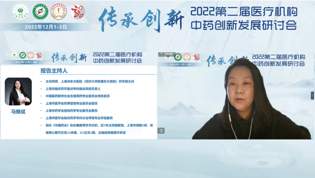 12月1-2日,2022第二届医疗机构中药创新发展研讨会于线上顺利举办。本次研讨会由上海市药学会、上海市中医药学会、上海市中西医结合学会联合主办,上海中医药大学附属龙华医院承办,上海中医药大学徐宏喜教授、上海中医药大学附属龙华医院何志高主任担任大会主席。上海市卫生健康委员会副主任、上海市中医药管理局副局长胡鸿毅教授,上海市药学会理事长陈红专教授、上海中医药大学附属龙华医院陈跃来院长、上海市药学会吕迁洲监事长、刘丙龙秘书长,海军军医大学第二附属医院陈万生教授、国家药典委员会业务管理处宋宗华副处长、上海市食品药品检验研究院季申教授、上海中医药大学附属曙光医院刘力主任、上海中医药大学附属岳阳中西医结合医院黄瑾主任等领导、嘉宾参加了开幕式,两天超过2100人次观看了会议直播。