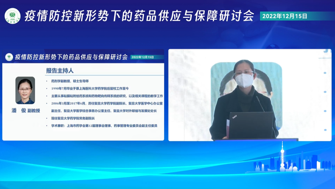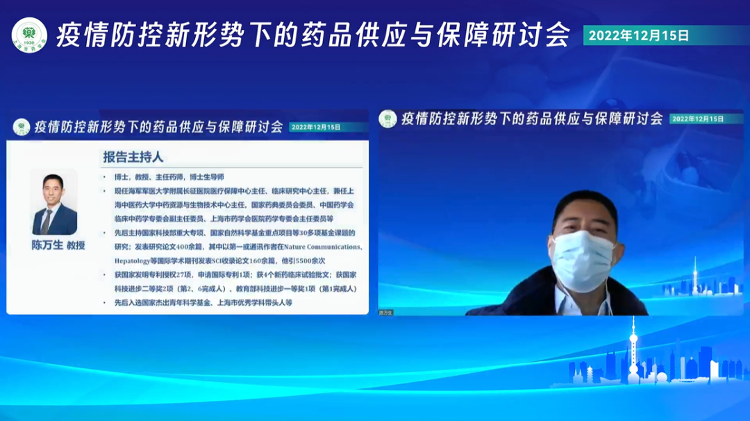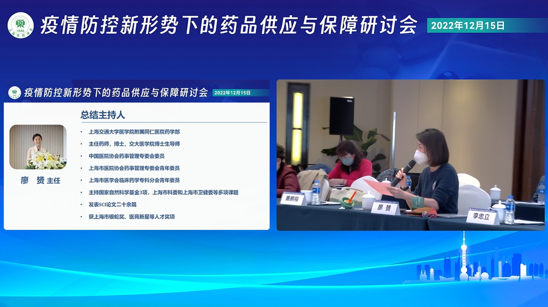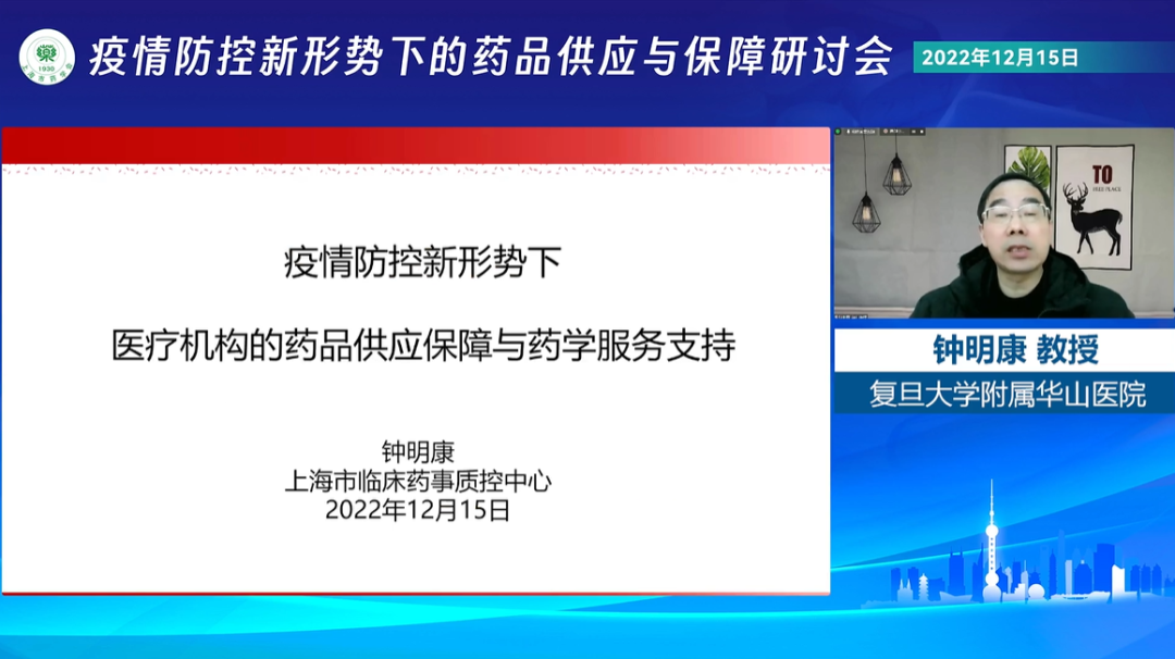 11月11日,国务院联防联控机制综合组发布《关于进一步优化新冠肺炎疫情防控措施 科学精准做好防控工作的通知》,公布了二十条措施,其中提出“加快新冠肺炎治疗相关药物储备”。近日,又出台了新“十条”措施,更加聚焦防疫工作的科学精准。为落实国务院联防联控机制要求,本市也在持续优化调整疫情防控相关策略。其中,疫情防控新形势下的药品供应与保障成为优化防疫工作的重要内容。为更好地做好药品供应保障工作,上海市药学会药事管理专业委员会联合上海市临床药事管理质控中心于12月15日举行“疫情防控新形势下的药品供应与保障”研讨会。会议采用“线上+线下”结合的形式,线上共计吸引1370人次观看直播。