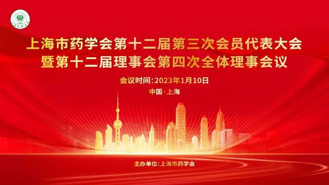 2023年1月10日,上海市药学会第十二届第三次会员代表大会暨第十二届理事会第四次全体理事会议顺利召开。上海市药学会陈红专理事长、吕迁洲监事长、陈芬儿副理事长、盛春泉副理事长、刘丙龙秘书长线下出席了本次会议,其余理事、监事及全体会员代表线上参会。