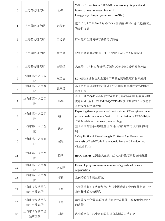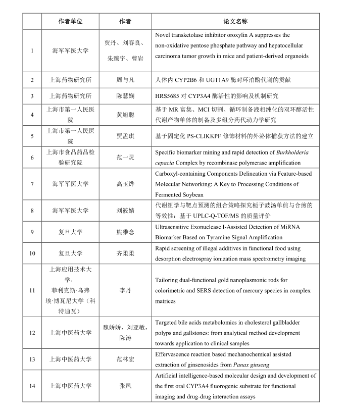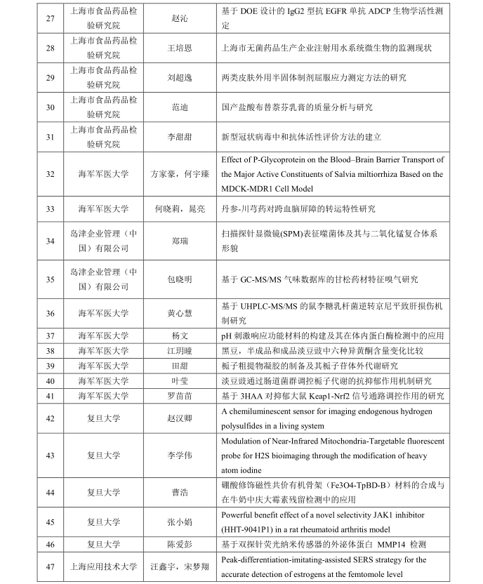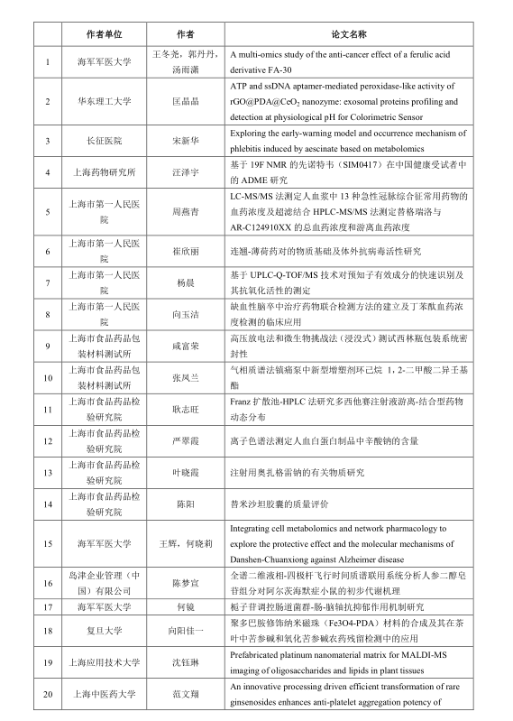 本次会议共收到论文投稿203篇,来自海军军医大学、上海中医药大学、复旦大学药学院、中科院上海药物所以及第一人民医院、第九人民医院、上海市食品药品检验所等机构的170余名专家及青年学者参会学习交流。