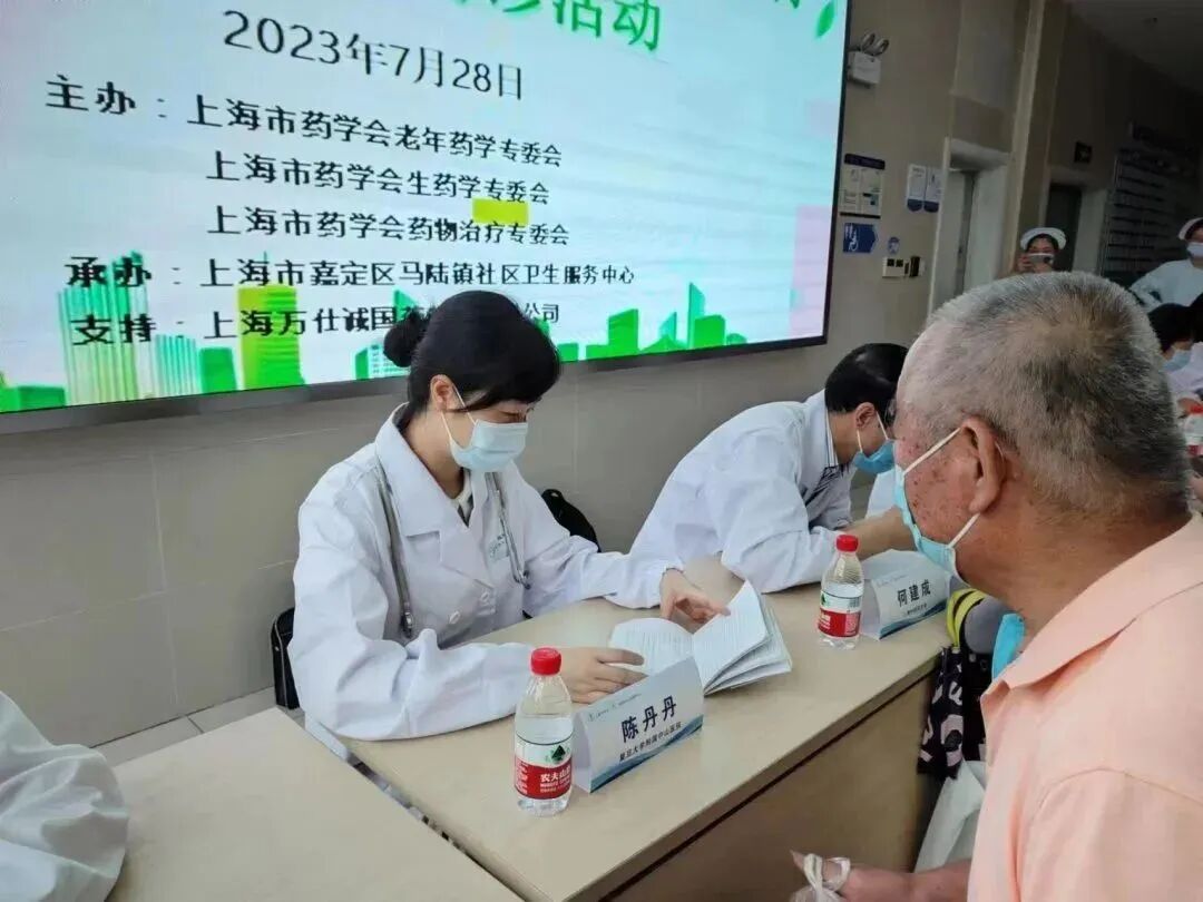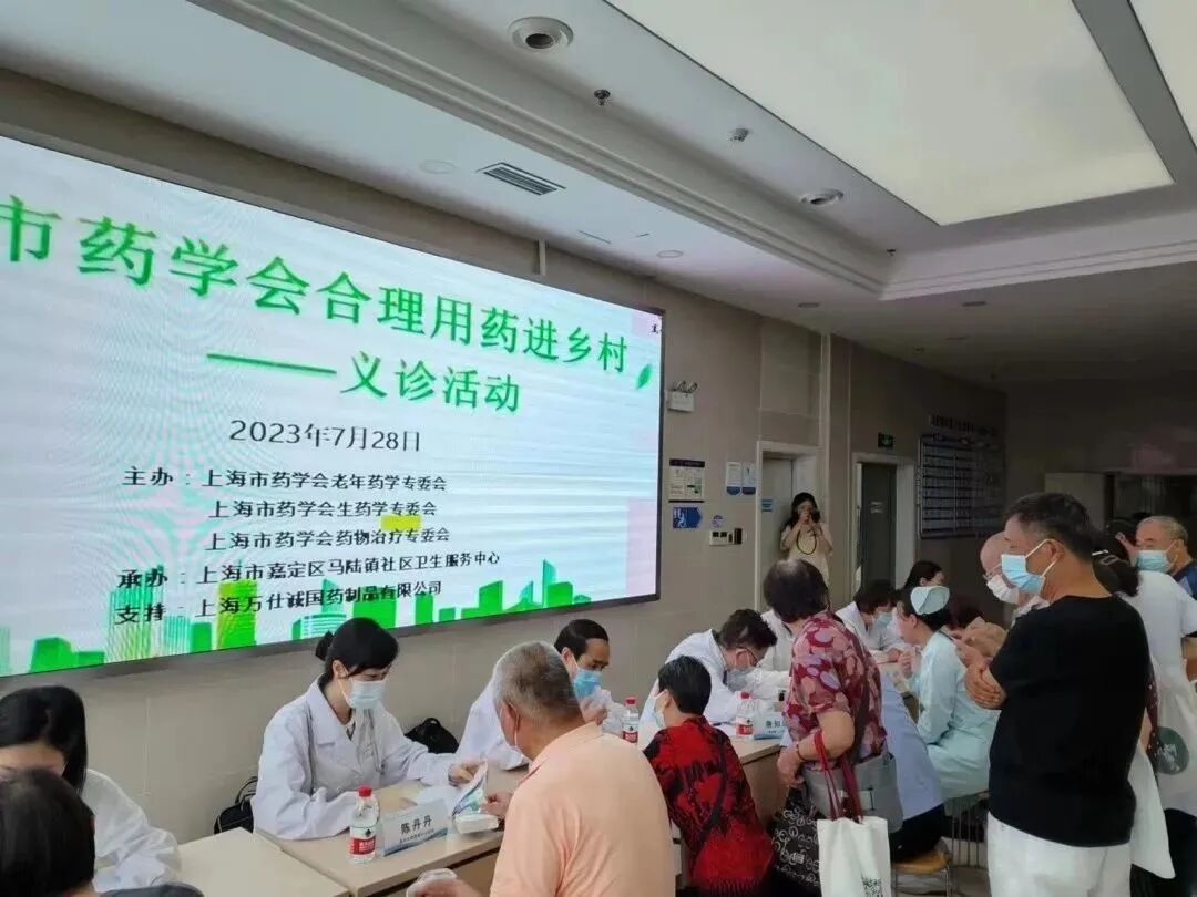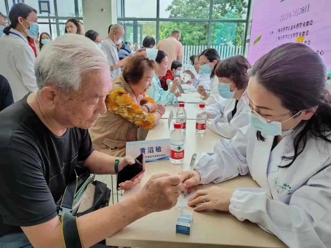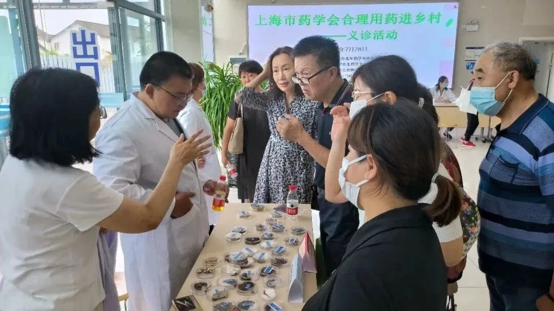 “践行党的二十大,健康义诊进社区”——为积极响应党的二十大号召,助力健康中国战略实施,提高全民的医疗健康水平及推动普及合理用药知识,促进社区居民养成正确的用药观念和习惯,2023年7月28日,由上海市药学会老年药学专委会、上海市药学会生药学专委会、上海市药学会药物治疗专委会联合主办的“上海市药学会合理用药进乡村—义诊活动”在嘉定区马陆镇社区卫生服务中心举行。前来参加的社区居民络绎不绝,现场氛围热烈而有序。