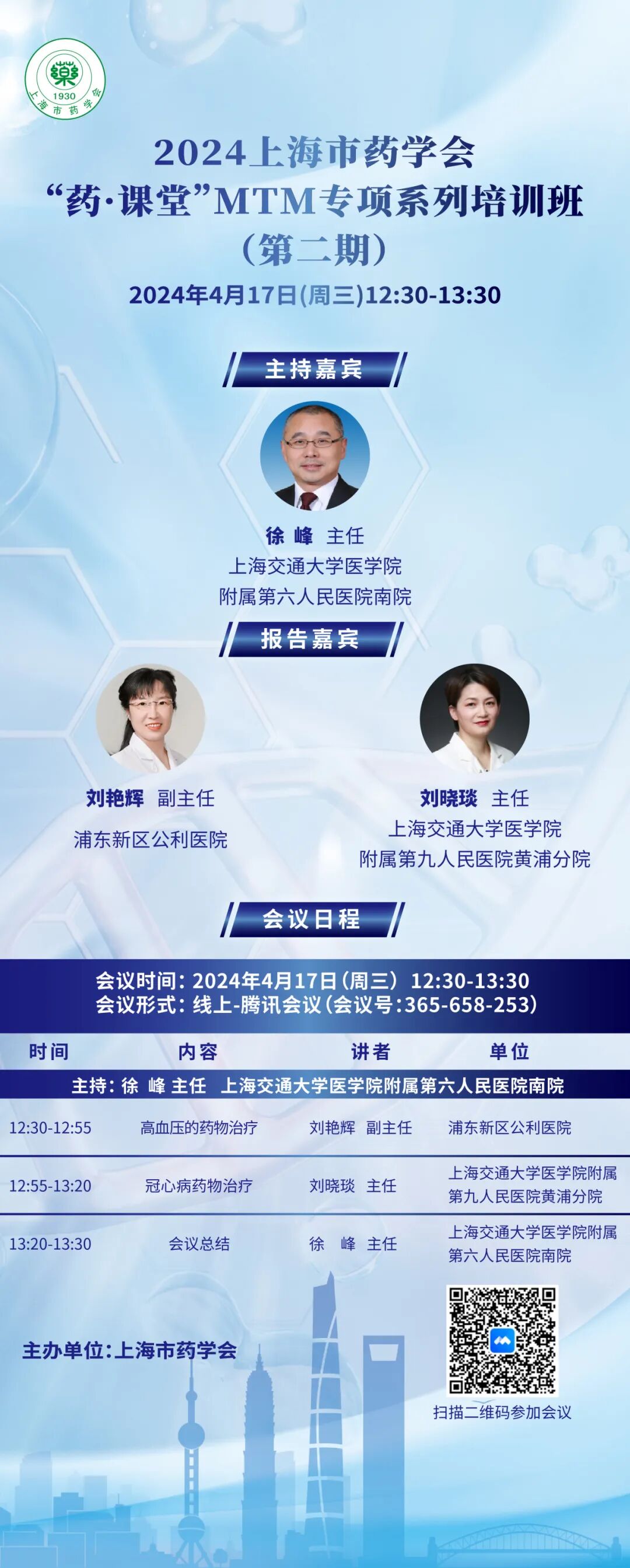 2024上海市药学会“药·课堂”MTM专项系列培训班每3周举办1次,共12期。参会学员完成系列培训班全部课程(12期)的注册及学习,且学习时长符合要求,可获得上海市药学会ǁ类学分6分和上海市药学会MTM药师培训证书。此次为该系列培训班的第二期,采用线上形式举行。欢迎大家积极报名参与!