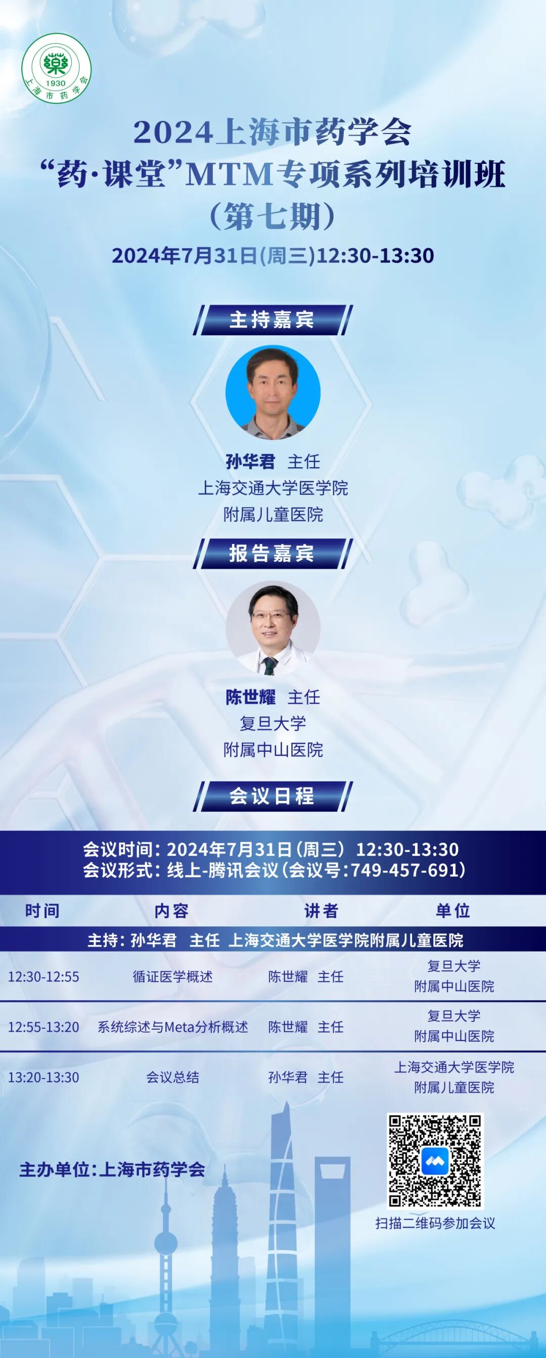 2024 上海市药学会“药·课堂”MTM专项系列培训班每 3 周举办 1 次,共 12 期。参会学员完成系列培训班全部课程(12期)的注册及学习,且学习时长符合要求,可获得上海市药学会ǁ类学分 6 分和上海市药学会 MTM药师培训证书。此次为该系列培训班的第七期,采用线上形式举行。欢迎大家积极报名参与!