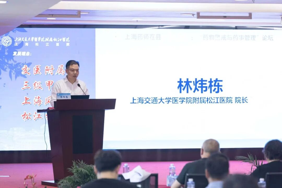 上海交通大学医学院附属松江医院院长林炜栋、上海市松江区市场监督局副局长顾芙蓉,上海药学会副理事长兼秘书长刘丙龙,分别进行致辞。