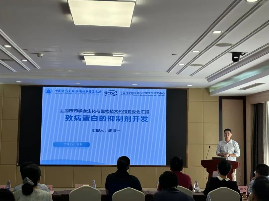 在学术报告环节,上海市药学会生化与生物技术药物专委会委员、中国科学院上海药物研究所罗成研究员进行了题为《如何加速基于临床需求的难治疾病药物开发与应用》的报告,系统地讲述了针对“难靶蛋白”开发设计药物的过程,发现了雷公藤红素、丹酚酸等多个重要天然产物的作用靶标,开发的靶向细胞自噬标志蛋白LC3的候选药物全球首个获准进入临床I期研究。随后,中国科学院上海有机化学研究所胡振一研究员作了题为“靶向致病蛋白的抑制剂开发”的精彩报告。胡教授介绍了他在TLR8靶向药物开发以及靶向蛋白磷酸化的PhosTAC技术方面的研究。二位精彩的报告吸引了到场的专家,现场讨论热烈。最后,会议在江文正主任委员的总结中圆满结束。