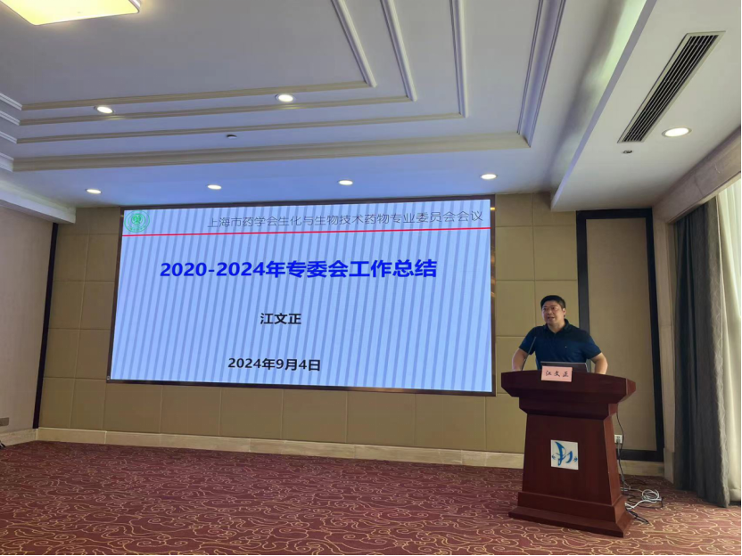 专委会上一届主任委员江文正回顾并总结了届期内的工作。随着科学技术的不断进步,生物技术已成为推动医药领域创新的重要力量,根据学会科技发展需要,上海市药学会生化药物专业委员会经研究决定更名为上海市药学会生化与生物技术药物专业委员会。将“生化”与“生物技术”相结合,能够更全面地覆盖当前及未来该领域的研究发展。同时,江文正主任委员还介绍了新一届专委会的筹备过程和委员候选人的构成情况。