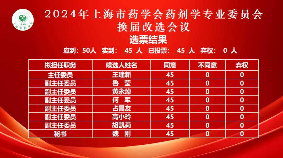 在选举环节,候选委员们依次进行了自我介绍,展现了各自的专业背景和学术成就,随后按照公平、公正、公开的原则和流程,选举出新一届药剂学专委会委员、主任委员、副主任委员及秘书。此次选举充分展示了上海市药剂学领域人才济济、蓬勃发展的良好态势。