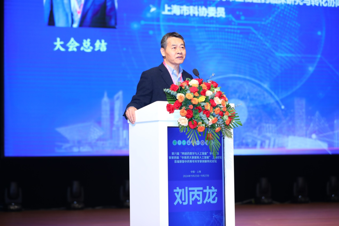 大会在上海市药学会副理事长兼秘书长刘丙龙先生的总结中顺利闭幕。刘秘书长对本次大会的组织形式、会议主题和专家报告给予了充分肯定,并介绍了上海市药学会以及上海市各级主管部门对人工智能与生物医药融合发展所提供的政策和平台支持,指出人工智能、大数据、大模型等数字技术一定能促进各类新药的研发,并预祝与会专家能通过充分的交流或依托联盟进行合作,早日在数智中医药的创新发展中取得丰硕成果。