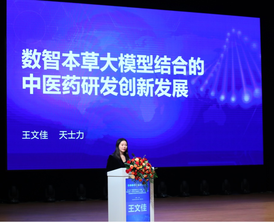 天士力国际基因网络药物创新中心总经理王文佳博士做了题为《数智本草大模型结合的中医药研发创新发展》的报告,介绍了天士力和华为联合多所高校合作构建的中医药大模型——数智本草,天士力利用该模型进行的创新方剂开发,已在动物模型中取得了良好的药效验证。