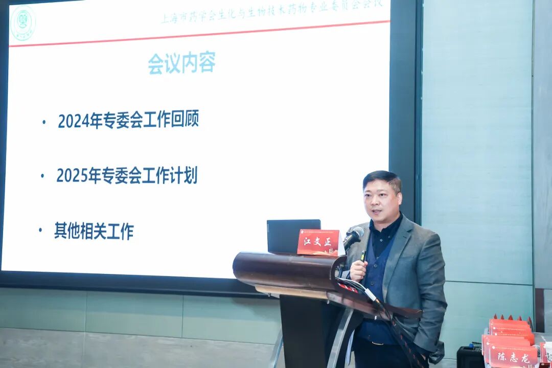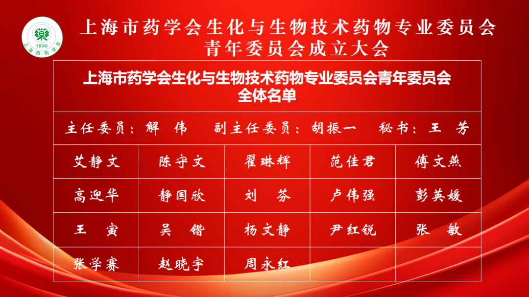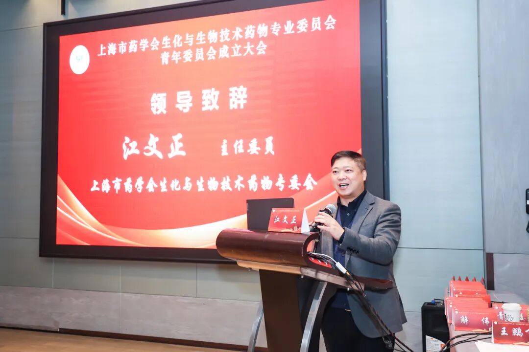 成立大会由上海市药学会生化与生物技术药物专委会秘书王鹏飞研究员主持,主任委员江文正致辞并宣布青年委员会成立决定。