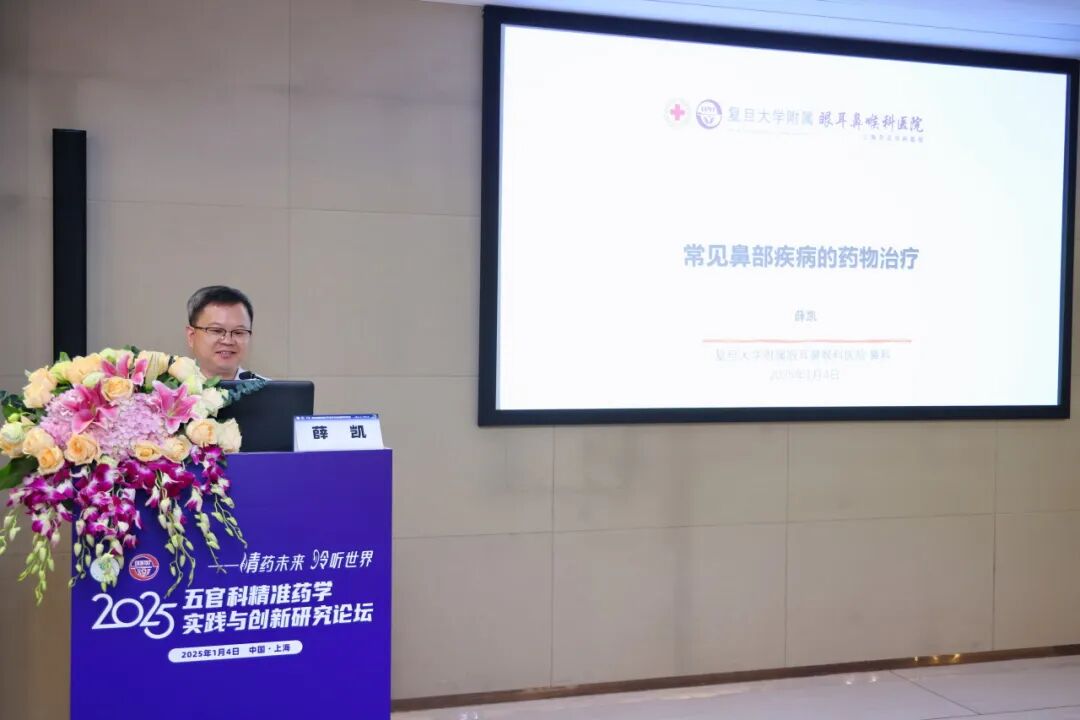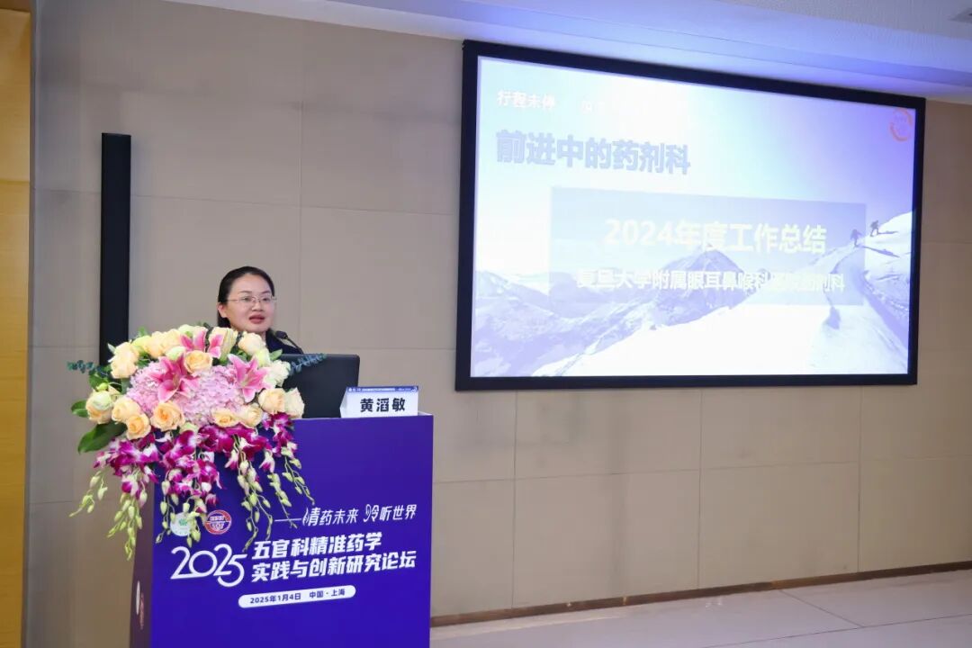 第三部分由复旦大学附属眼耳鼻喉科医院老专家仇荣星主任主持。复旦大学附属眼耳鼻喉科医院耳鼻喉科薛凯教授结合临床实践,分享了“鼻部疾病药物治疗”领域的最新进展。复旦大学附属眼耳鼻喉科医院药剂科主任黄滔敏教授以“五官科临床药学实践”为主题进行了分享。她首先回顾了药剂科在2024年的年度工作成果,随后系统介绍了团队在五官科药学领域的探索与实践经验,为参会者提供了宝贵的参考与借鉴。